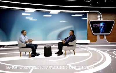 - TV Interview on Nanoparticle-Based Cancer DiagnosticsNovember 7, 2025On November 6, Prof. Gilles Bruylants appeared on "Les visages de la Recherche" (LN24) to present his research on the development of nanoparticle technology to support cancer diagnosis. The project is conducted in collaboration with Prof. Michel Meunier (Polytechnique Montréal) and Prof. Ivan Jabin (ULB), and is funded by the FNRS and the Fonds de recherche du Québec.