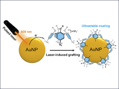 - New PublicationNovember 26, 2025Plasmon-mediated functionalization of colloidal gold nanoparticles through reductive grafting of diazonium salts under pulsed laser irradiation, by Bryan Gosselin, Maurice Retout, Victor Lepeintre, Jérôme Tisaun, Claire Mangeney, Cécile Moucheron, Gilles Bruylants* and Ivan Jabin* - First published: 18 November 2025