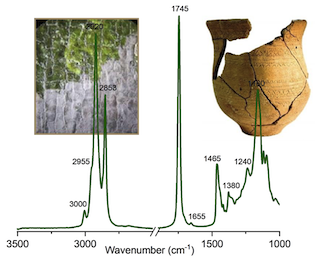 Using FTIR, NMR, GC-MS and Atomic Force Microscopy-Infrared Spectroscopy (AFM-IR), we are studying by means of model systems how mineral components like calcium carbonate (CaCO₃) influence lipid absorption, transformation, and extraction. AFM-IR offers the unparalleled potential to map lipid distribution at the nanoscale resolution, to better understand molecular interactions within ceramic matrices.