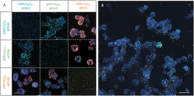 A recent collaboration with Prof. M. Meunier (Polytechnique Montréal) and Ivan Jabin will take advantage of these plasmonic nanoparticles functionalized with calixarenes and antibodies to improve lung cancer diagnostics. Using lateral illumination microscopy, these nanostructures appear as very bright dots on samples that can be counted to provide objective quantification, and by using NPs of different colors it is possible to achieve multiplexed labeling. NPs can be visualized with a standard microscope thanks to an inexpensive, portable adapter, which facilitates the transfer of this technology to the clinic, providing a powerful tool for patients to benefit from the best personalized treatments.